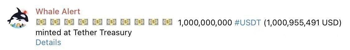⚡️Tether снова выпустил 1 млрд USDT.