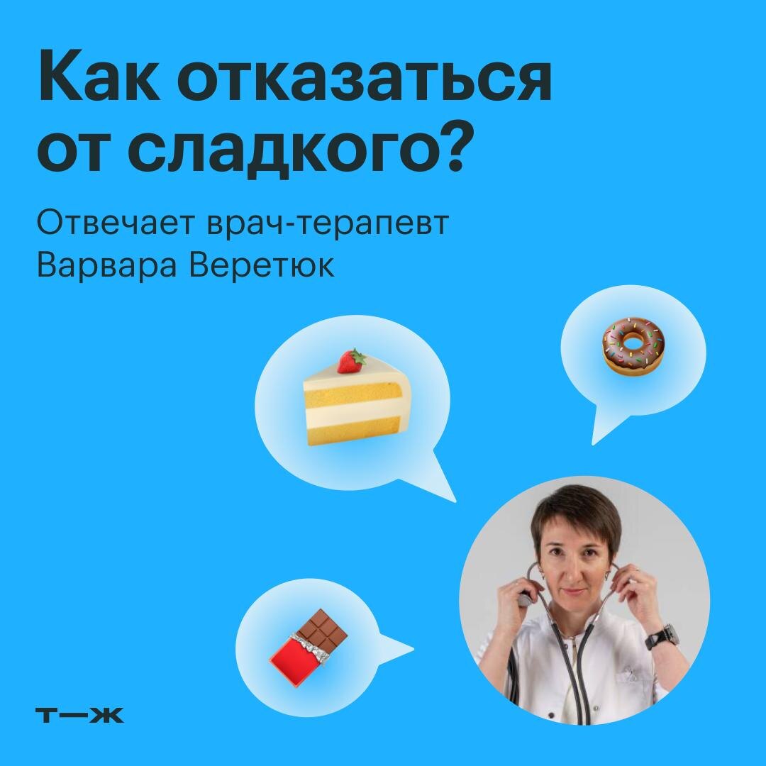 Читатель переживает, что каждый день ест много сладкого. Попросили терапевта и нутрициолога Варвару Веретюк дать совет, как снизить количество сахара в рационе 👩⚕️ Как есть меньше сладкого Если у вас есть медицинские показания к ограничению сладостей, например сахарный диабет, нужно использовать метод диабетической тарелки. 🍽 Для этого тарелку условно делят на три части. Половину заполняют некрахмалистыми овощами, четверть — источниками белка, еще четверть — источниками углеводов, включая крупы, хлеб, макароны, картофель и сладости. При таких ограничениях съесть много сладкого не получится: тогда придется отказаться от сложных углеводов, которые нужны для здоровья и дают длительное чувство насыщения. Если вы здоровы, а цель — уменьшить количество сладостей в рационе для поддержания нормального веса и хорошего самочувствия, стоит внимательнее отнестись к своему питанию в целом. 🥘 Питаться сбалансированно и разнообразно. Часто повышенная тяга к сладкой и жирной пище связана с д