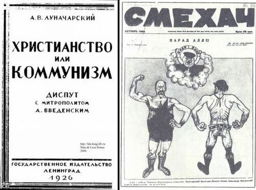 Луначарский, нарком просвещения, начав этот диспут, назвал христианство религией «античного пролетариата»(?). Оно обещало беднякам заступничество с Небес. Христос, понимается Луначарским, как «Небесный Интервент». (Удивительно, как часто люди переодевают Христа в нужные им «одеяния». То в одежды интервента, то в милитариста, то в экстремиста. Не Христа Спасителя, а пятна Роршаха делают из Него: что хочешь, то и видишь. Может оттого, что не знают Христа настоящего?)