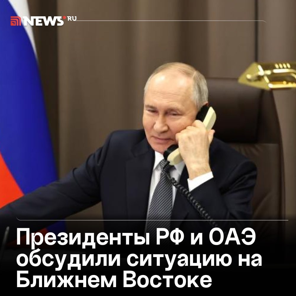 Главы государств выразили озабоченность эскалацией ирано-израильского конфликта и отметили высокий уровень российско-эмиратского сотрудничества в политической, торгово-экономической и гуманитарной областях.