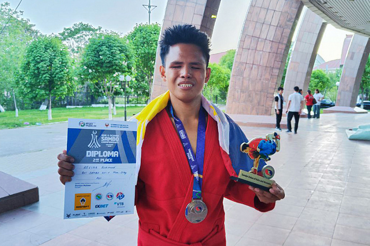 Филиппинский спортсмен Ричмонд Ревина дебютировал в этом году на Чемпионате Азии и Океании по самбо в дисциплине самбо слепых (класс SVI-1 – тотально слепые). На своих первых соревнованиях такого высокого уровня Ричмонд не стал стесняться и сходу вышел в финал, завоевав в итоге серебряную медаль турнира в весовой категории до 64 кг. О значимости этого достижения, атмосфере на чемпионате в Ташкенте, а также желании выступать в соревнованиях по боевому самбо Ричмонд рассказал в интервью сайту ФИАС. – Я даже представить не мог, что сумею завоевать серебряную медаль на таком крупном международном турнире по самбо. Каждый день я молюсь и благодарен Богу за то, что он слышит мои молитвы. Выступление на соревнованиях в Ташкенте и медаль Чемпионата Азии и Океании сделали счастливым меня и моих родителей. Как давно вы занимаетесь самбо? – Я новичок. Занимался различными единоборствами, и только пару лет назад пришел в самбо. Стараюсь тренироваться и изучать правила, но не могу сказать, что это