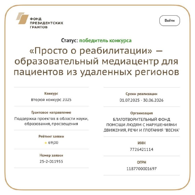 Получили поддержку ФПГ на развитие просветительсконо проекта о реабилитации