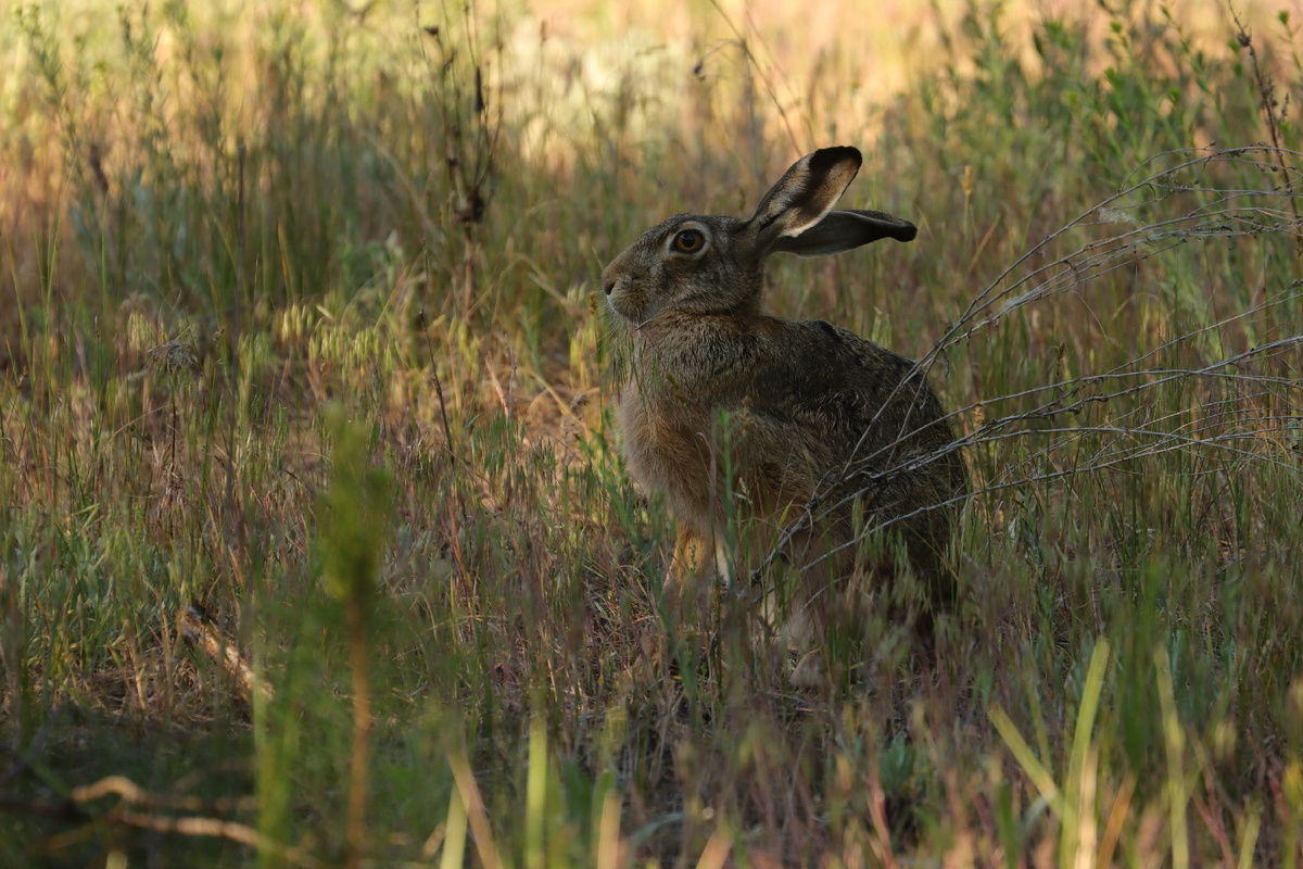 С наступлением лета ранний подъем становится легче и привычнее. Трели птиц под окном и лучи солнца, скользящие по лицу словно зов природы, работают лучше будильника. И вот шесть утра субботы, а мы уже въезжаем в лес, чтобы насладиться утренней лесной прохладой. Да и животные в это время более активны. И удача нам улыбнулась. Рядом с дорогой тянущейся через лес заяц – русак наслаждался сочной травой приправленной осевшей на ней росой. При нашем появлении он сначала замер и хотел сделать вид, что его тут нет. Но страх оказался сильнее и косой в припрыжку рванул от нас. Мы поехали дальше и метров через сто опять столкнулись с его ушами :) Сидел, жевал травинку. Следующая кого мы встретили была лиса. Мы шли по лесу и вдруг, я краем глаза заметила какое-то движение. Спрятавшись за дерево рыжая красотка поглядывала в нашу сторону, видимо оценивая степень опасности. Так мы стояли и смотрели друг на друга. Она на нас мы на нее. Длилось это не долго ибо предложить ей нам было нечего, кроме вним