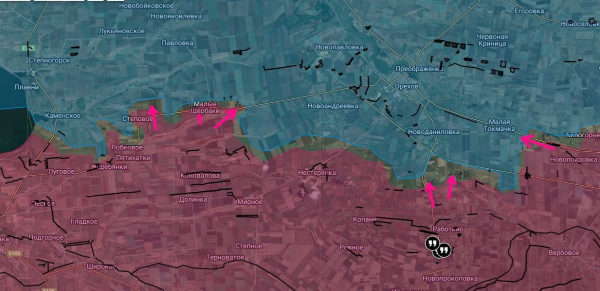 Армия ВС РФ продолжает наступление в зоне спецоперации. Актуальные новости Запорожской области от 18 июня. Сегодня ночью, 18 июня, российские «Герани» атаковали тыловые районы ВСУ в Запорожье, Краматорске, Изюме и Днепропетровской области. По данным Telegram-канала «Два майора», атаки носили «концентрированный» характер. Глава ЗОВА Иван Фёдоров сообщил, что по Запорожью ударили как минимум девять дронов. В результате атак загорелась территория промышленного предприятия: её охватили пожары площадью 100, 300 и 800 «квадратов». Пострадавших и жертв нет. Обстановка на Запорожском фронте: прорыв под Работино Бойцы ВС РФ продолжают наступление на Запорожском направлении в зоне СВО. Так, в районе Каменского российские подразделения регулярно обстреливают позиции ВСУ ФАБами и артиллерией. Севернее Степового идут бои за лесополосы. Также продолжаются сражения за Малые Щербаки и Щербаки. Об этом пишет военкор Анатолий Радов. Кроме того, он отметил, что есть продвижение севернее Работино и в Мало