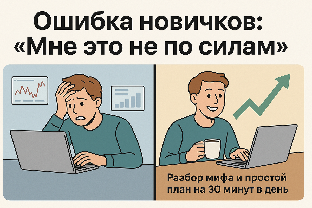 📍 Разбор и мягкий путь к реальному старту за 30 минут в день Многие новички в трейдинге допускают одну и ту же ошибку: считают, что трейдинг — это только для “избранных”. Для тех, у кого уйма свободного времени, техническое образование и железные нервы. Если ты когда-либо думал: «У меня нет времени, чтобы разбираться в этом»