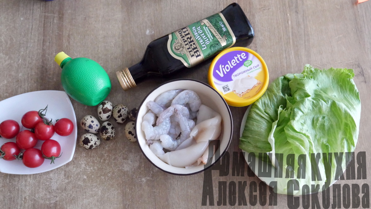 Доброго вам дня, дорогие любители легеньких и приятных салатов! 😊 Этот вариант, если брать хорошие продукты, получается не самым бюджетным. На фото под «Пнадобится», например, виден творожный сыр, который увидел в супермаркете и купил за 160 рублей. Когда готовил, открыл, а он с плесенью. Пришлось отправить дочь в ближайший молочный магазин за проверенным «Хохландом» по 195 за чуть меньший объем😊 И с ним – творожным сыром – получается замечательным. Такой салат станет прекрасным дополнением к обеду или ужину. Хотя, я и на завтрак иногда такие делаю, если все компоненты есть под рукой и никуда не тороплюсь. Сырые креветки опустить в слегка подсоленную кипящую воду на пару минут, потом добавить кальмара, и через 40-45 секунд опрокинуть на сито и залить холодной водой, чтобы остановить термообработку высокой температурой. В идеале было бы креветки обжарить, но я в эти че-то так устаю, что не до изысков. Поэтому самый простой вариант – отварить. Следом отварить перепелиные яйца. Я делаю