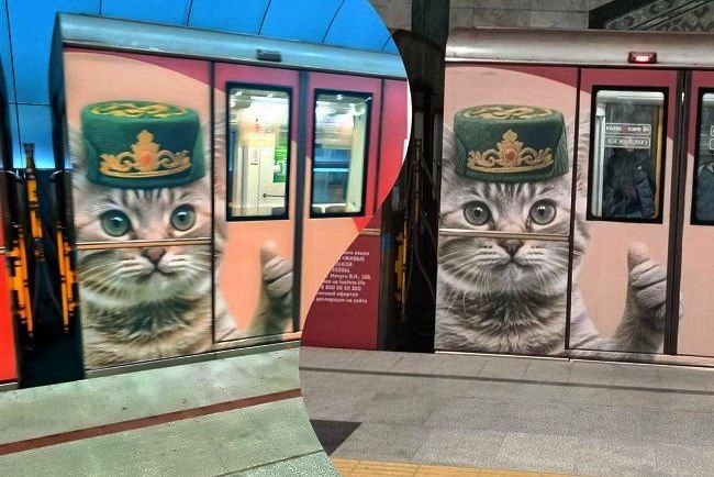 Там вагоны из Мытищ, которые закупил местный метрополитен, украсили котиком в тюбетейке!