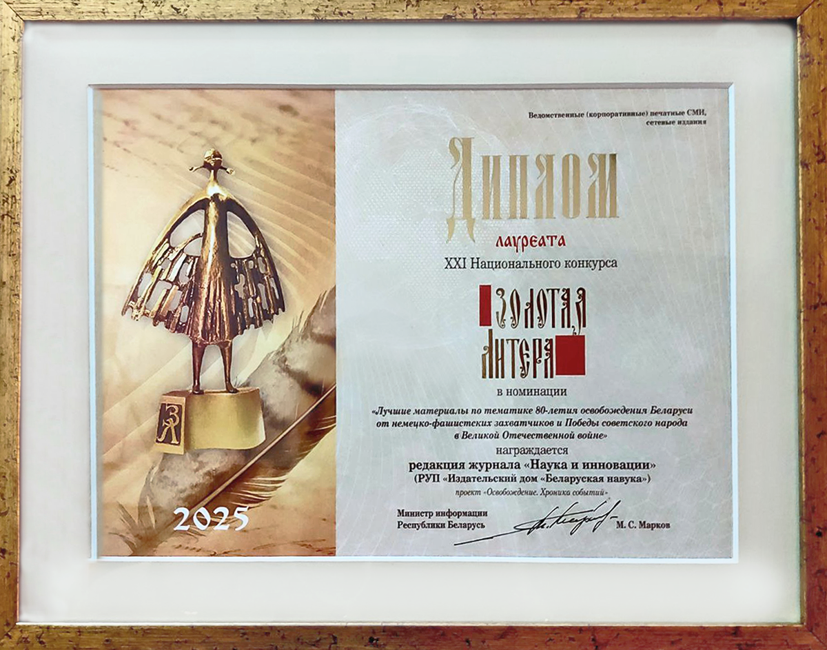17 июня 2025 г. В рамках мероприятия состоялось вручение наград победителям и лауреатам конкурса «Золотая литера». В номинации «Лучшие материалы по тематике 80-летия освобождения Беларуси от немецко-фашистских захватчиков и Победы советского народа в Великой Отечественной войне» диплом лауреата получила редакция журнала «Наука и инновации». В подготовке материалов данного проекта принимали участие сотрудники центра военной истории Беларуси Института истории НАН Беларуси. Непосредственно ими были подготовлены все публикации тематической рубрики «Освобождение. Хроника событий».