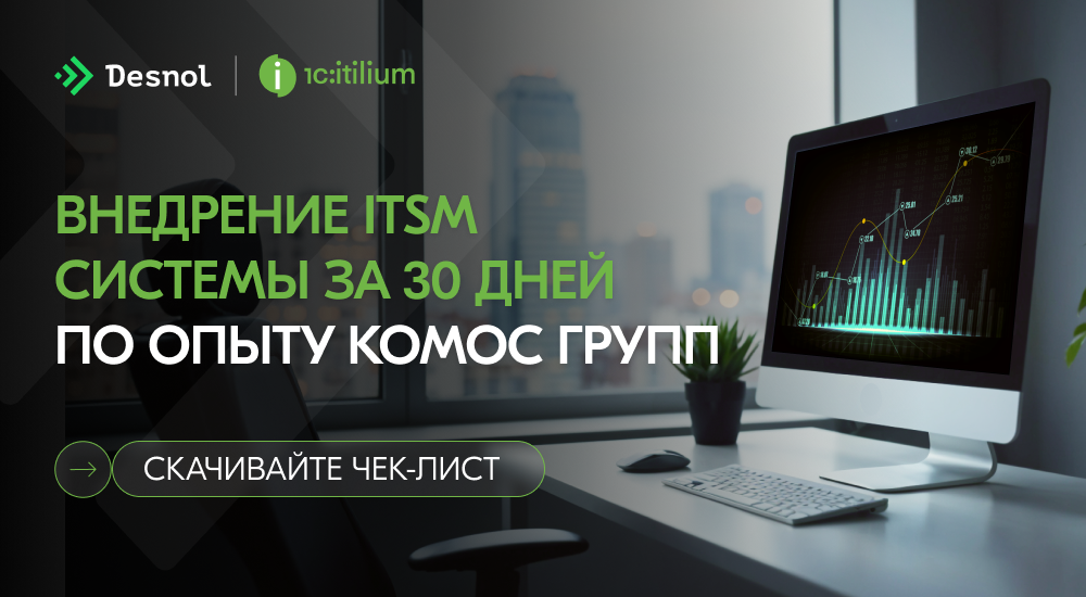 IT-служба агрохолдинга «КОМОС ГРУПП» прошла путь от анализа болей сервисных процессов, управляемого запуска ITSM-решения до промышленной эксплуатации за 4 недели — с измеримыми результатами и высокой оценкой пользователей. Эксперты 1C:ITILIUM собрали этот опыт в чек-лист, который поможет: