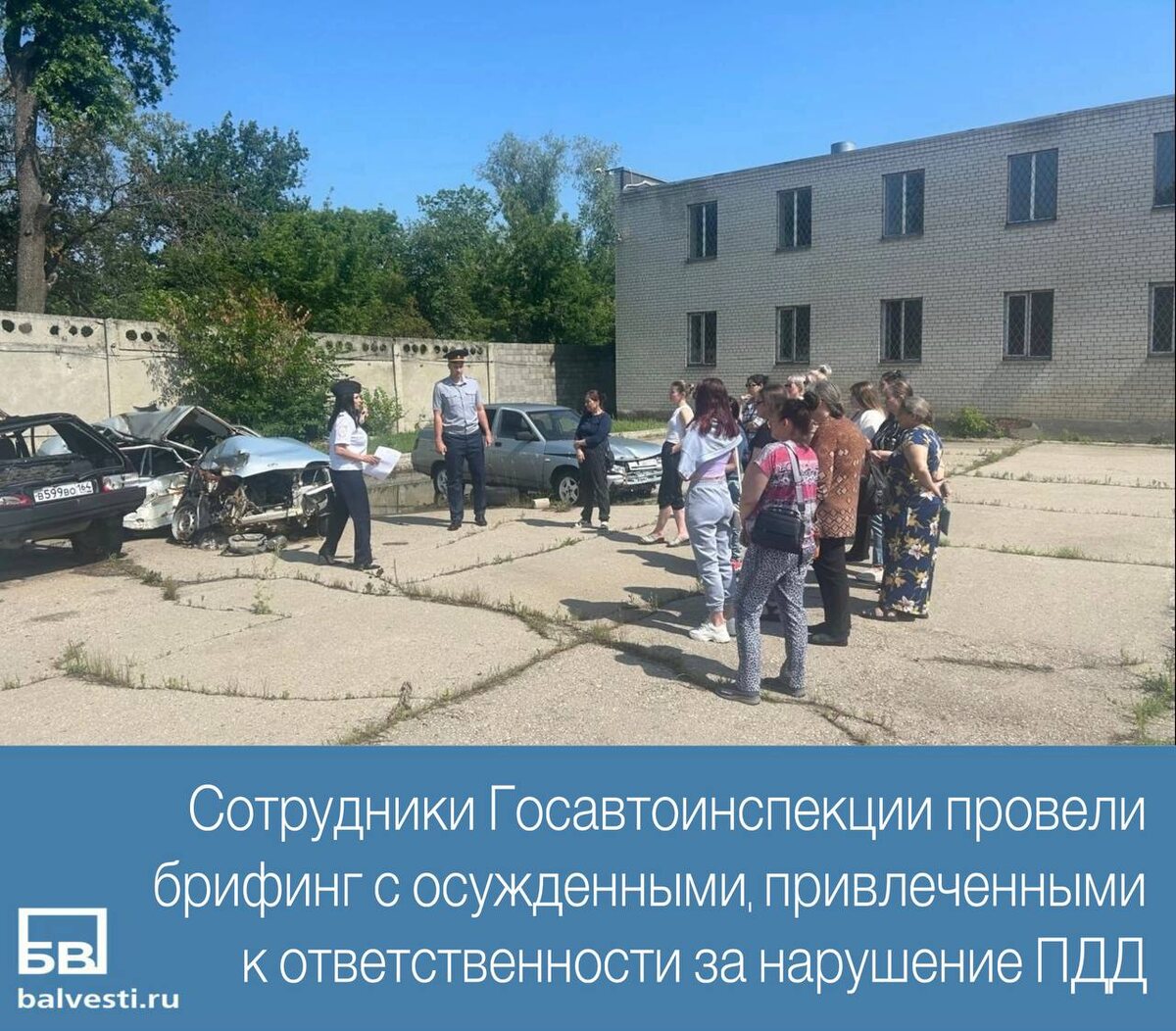 Госавтоинспекция МУ МВД России «Балаковское» совместно с УФИЦ №2 ФКУ ИК-5 УФСИН России по Саратовской области провели брифинг с осужденными, отбывающими наказание в виде принудительных работ. В мероприятии приняли участие 20 человек. Осужденным, привлеченным к ответственности за нарушения ПДД (в том числе по ч. 2 ст. 264 УК РФ) напомнили о правилах поведения на дороге, разъяснили недопустимость управления транспортным средством в состоянии опьянения, а также напомнили об административной и уголовной ответственности за подобные правонарушения. В ходе беседы были приведены статистические данные и примеры ДТП с тяжкими последствиями, включая наглядные материалы с изображениями поврежденных автомобилей. Особое внимание уделили важности соблюдения ПДД не только водителями, но и пешеходами, а также пользователями средств индивидуальной мобильности, включая электросамокаты и велосипеды. Сотрудники ОГИБДД и УФСИН призвали осужденных к ответственному поведению на дорогах, подчеркнув, что соблю