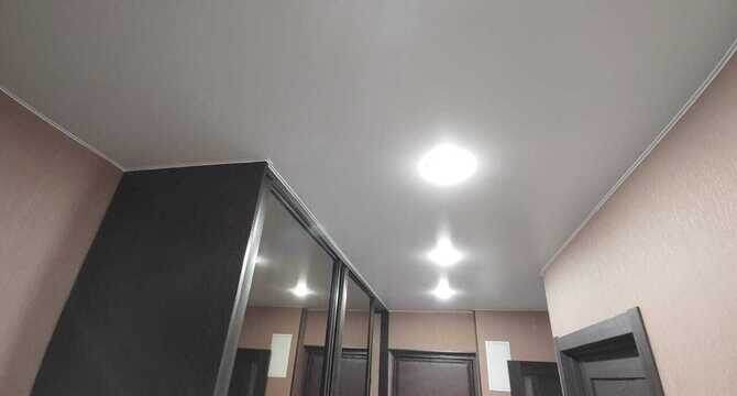 Недостаток: это не самый красивый и аккуратный способ. Плюс потребуются доп. закладные, чтобы обойти закладные от шкафа купе. Плюс, может потребоваться дополнительная работа по установке натяжного потолка внутри шкафа.