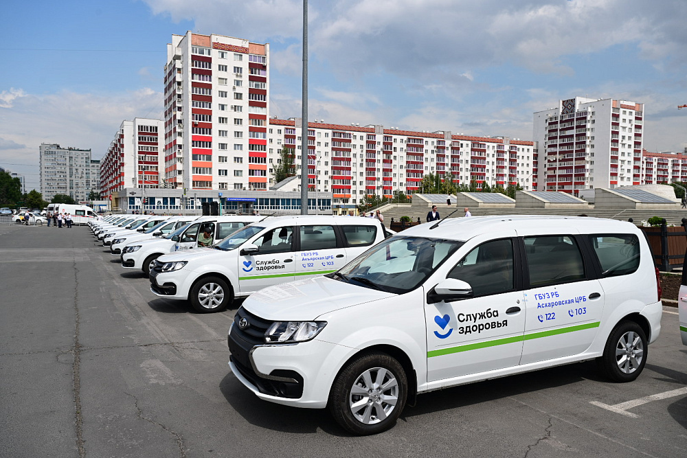 Медучреждения республики получили 31 новый автомобиль. Глава Башкирии Радий Хабиров передал главным врачам медицинских учреждений республики ключи от 31 нового легкового автомобиля. Церемония, приуроченная ко Дню медицинского работника, состоялась на площадке перед конгресс-холлом «Торатау». Техника приобретена в рамках программы модернизации первичного звена здравоохранения с привлечением в том числе федеральных средств по нацпроекту «Продолжительная и активная жизнь». Это автомобили «Лада Гранта», «Лада Ларгус» и «Лада Нива Тревел», предназначенные для работы в сельской местности. Часть машин оборудовали для перевозки маломобильных пациентов. Новые автомобили получили Акъярская, Аскаровская, Баймакская, Бакалинская, Балтачевская, Белебеевская, Белокатайская, Туймазинская, Чекмагушевская и Янаульская центральные районные больницы. Машины также отправятся в медучреждения Уфы и Кумертау. — Поздравляю вас с Днем медицинского работника, — сказал в своем приветственном слове Радий Хабиров.