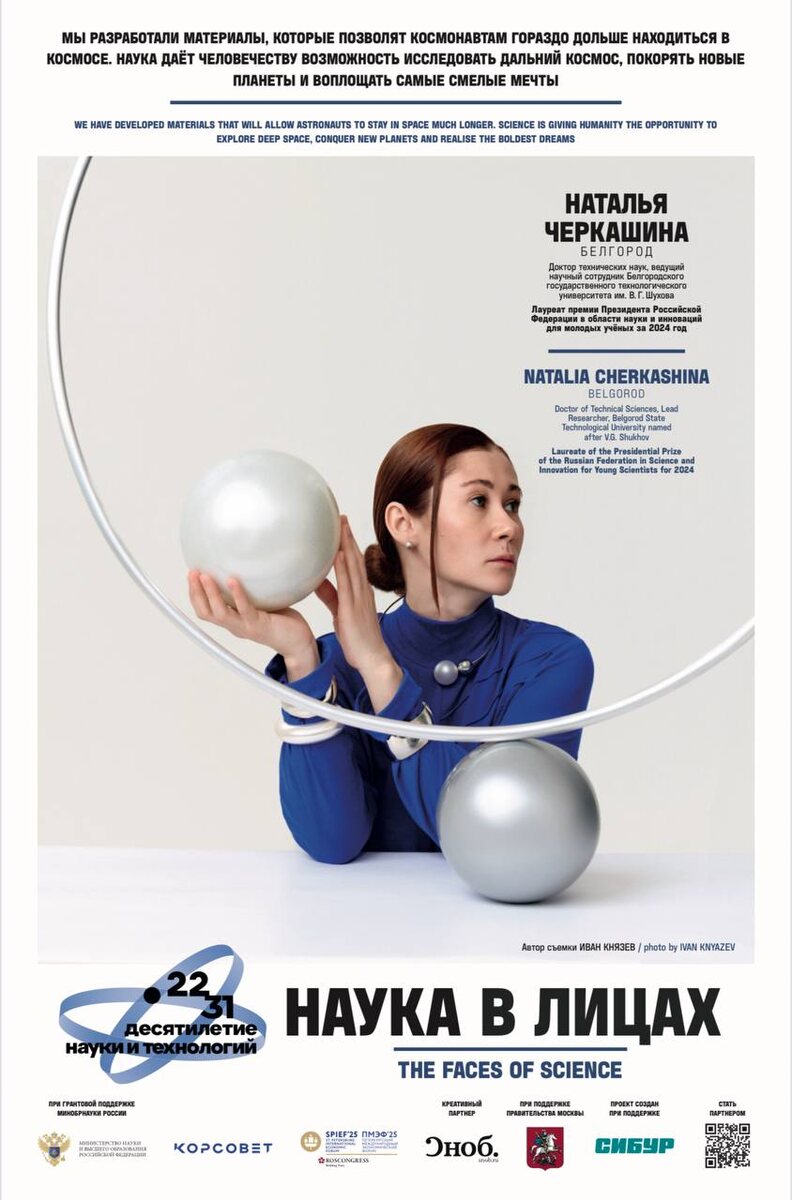 На площадке Петербургского международного экономического форума открылась выставка портретов ведущих российских учёных «Наука в лицах», в числе которых ведущий научный сотрудник Белгородского государственного технологического университета им. В. Г. Шухова, Наталья Черкашина. Напомним, ПМЭФ-2025 проходит в Северной столице с 18 по 21 июня. «„Наука в лицах“ проводится уже не первый год. Её герои работают в различных научных направлениях, живут в разных городах. Они индивидуальны, но каждый из них уже добился значительных результатов. И сегодня эти результаты как никогда востребованы страной», — отметил заместитель министра науки и высшего образования Российской Федерации Денис Секиринский. Выставка «Наука в лицах» проходит при поддержке Фонда «Росконгресс» и Координационного совета по делам молодежи в научной и образовательной сферах Совета при президенте Российской Федерации по науке и образованию. В течение года выставка также будет представлена в общественных пространствах Москвы: н