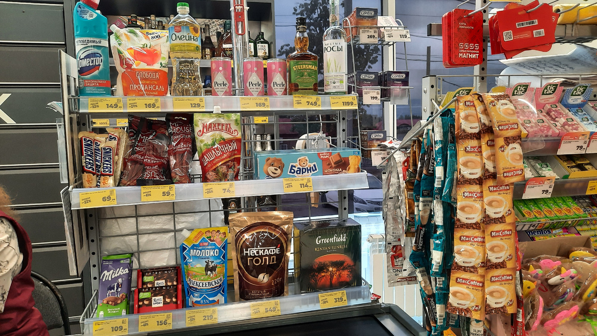 Всех приветствую, мои дорогие друзья и подписчики. Покажу вам витрину с товарами со скидкой у кассы в Магните у дома. Магазин находится по адресу Ростовская область, Зерноградский район, станица Мечётинская, улица Ленина, 50 Доместос средство Универсальное Свежесть Атлантики 0.75 л цена со скидкой по карте 149.99 рублей. Слобода Майонез Провансаль 67 % 750 г цена со скидкой по карте 169.99 рублей. Олейна Масло подсолнечное рафинированное дезодорированное 1 сорт без запаха 1 л цена со скидкой по карте 129.99 рублей. Вино игристое Ла Петит Перле розовое брют 0.25 л ж/б (Союз Вино) цена 169.99 рублей. Коктейль Steersman Apple Висковой напиток 35 % 0.7 л цена со скидкой по карте 749.99 рублей. Водка Чистые Росы 40 % 0.5 л ( Саранский ЛВЗ) цена 1199.99 рублей. Барни Медвежонок Пирожное с шоколадной начинкой 150 г цена со скидкой по карте 114.99 рублей. Махеев Кетчуп Шашлычный 300 г цена со скидкой по карте 74.99 рублей. MEAT HOUSE Original сырокопченые Кнуты классические 60 г цен