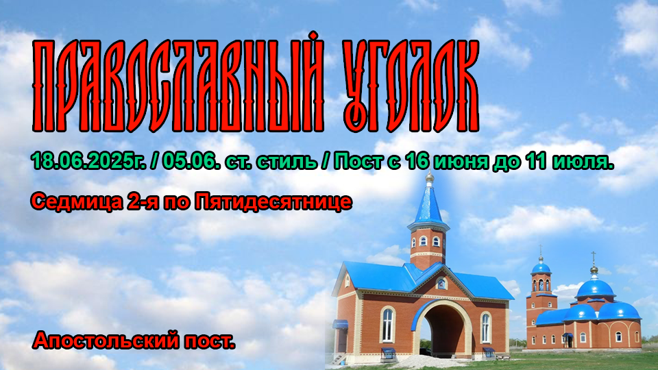 Седмица 2-я по Пятидесятнице. Апостольский пост. День памяти Священномученика Дорофе́я Тирского, епископа. Перенесение мощей благоверного князя Игоря (в Крещении Георгия, в иночестве Гавриила) Черниговского и Киевского. День памяти Блаженного Константина, митрополита Киевского и всея Руси. День памяти Благоверного князя Фео́дора Ярославича Новгородского. День памяти Преподобных Вассиана и Ионы Пертоминскихъ, Соловецких. День памяти святых мучеников Маркиана, Никандра, Иперехия, Аполлона, Леонида, Ария, Горгия, Селиния, Ириния и Памвона. День памяти преподобного Феодора, Иорданского чудотворца. День памяти преподобного Анувия, пустынника Египетского. День памяти Преподобного Дорофе́я Палестинского, аввы.