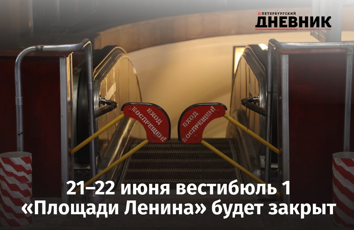 🚧 Вестибюль станции метро «Площадь Ленина» временно закроют на вход 21 и 22 июня из-за ремонта эскалатора будет закрыт на вход первый вестибюль станции метро «Площадь Ленина». Пассажирам предлагают воспользоваться вторым вестибюлем. Кроме того, по рабочим дням до 1 августа будут действовать временные ограничения: 🔸 с 08:00 до 09:00 вестибюль закрыт; 🔸 с 17:20 до 19:00 — ограничен вход. График может скорректироваться в зависимости от пассажиропотока. Фото: Роман Пименов Петербургский дневник