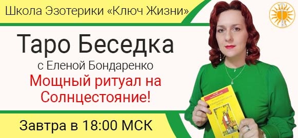Приветствую вас, друзья! ❓ Сталкивались ли вы с препятствиями на своем пути? Очевидно, что да) Все мы сталкивались и не раз! 📍 Причины этих препятствий могут быть очень разными. Но для нас важнее – как от них избавиться. Ведь, правда? 💯 Ваши цели и желания могут реализовываться намного проще! ❓Хотите узнать подробнее? ❓А сделать ритуал на избавление от препятствий🕯🎴? ❗️ Приходите завтра в нашу ЖИВУЮ беседку, и я расскажу, что нужно делать! 🗓 Встретимся 19 июня в 18:00 МСК в неформальной обстановке. ➡️ Расскажу вам, как избавляться от препятствий и как провести мощный ритуал. 🕔 Ссылка на встречу А пока освободите себе в расписании время и запишите в календарь - «19 июня в 18:00 МСК - встреча с Еленой. Тема: “Ритуал на Солнцестояние» Жду всех!