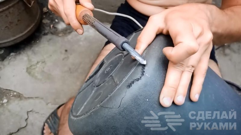 Да, вы всё правильно поняли: трещину на пластиковом ведре можно только запаять. Других рабочих способов решить данную проблему еще не придумали.