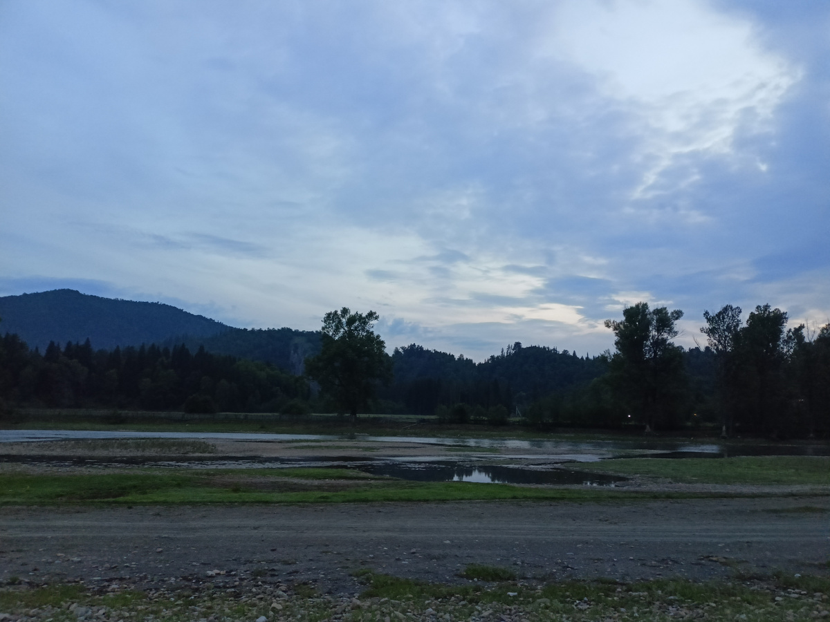 В Башкирии очень красивые места. Горы, леса и мелкие горные реки, глубиной по пояс и меньше. Так что сплав совсем не опасный, можно с детьми. И тут очень красиво. Приехали ночью, распаковались в Толпарово. Немного поспали. Кто не спал - собирал катамараны. Катамаран -это две надувные торпеды, скрепленные металлическими трубками. Посередине на веревках крепится деревянный лист. На лист складываем вещи. Позавтракали пшенной кашей, сваренной на костре, и в путь. На катамаране 6 гребцов. Двое впереди задают темп, двое сзади рулят. Грести в первый раз было трудно, плюс я была впереди, а во второй сплав села в середине - отлично ) Обычно впереди сажают самых легких, сзади мужчины. Если катамаран застревает на камнях , то сначала встают мужчины, - катамаран налегке проплывает. Если нет, то встают взрослые женщины. Дети обычно сидят. Плюс в катамаран по центру нагружены сумки с провизией и водой, палатки, спальники и личные вещи, ну то есть всё, что есть. Потому что забирать нас будут
