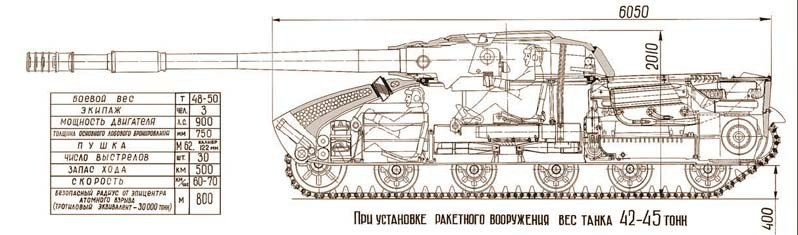 Помнится, очень давно я делал статью про ветку из двух Об. 752. С тех пор утекло немало воды, Об. 752 в игре появился, но лишился в процессе барабана, став неисторичным (с циклом у него должна быть другая башня). Так же на РуБай Об. 265Т ушел на 8 уровень с цикличным орудием, в то время как на ЕУ он ТТ 9 уровня с обратной дозарядкой. То есть мы дважды пролетели мимо предтопов с дозарядкой, а вспоминая про СТ-62, становится совсем грустно, ведь мы получили только Об. 590. Но здесь нас может выручить ВНИИ-100. Снова. И это тот случай, когда несмотря на историчный статус танка, написать о нем много не получится. Данный танк является частью работ ВНИИ-100 по созданию перспективного ракетного танка. Во время этих работ было создано много чего интересного, но нас интересует одна машина: Конкретно в ракетном варианте предполагалось 152мм орудие-пусковая с опциональной установкой 180мм бревномета (а по другому такое орудие назвать сложно). Но в качестве запасного варианта прорабатывалась устан