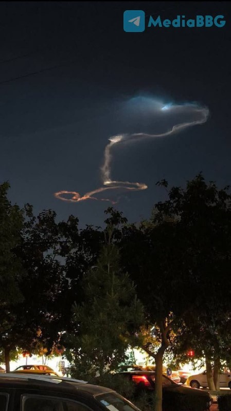 Оставленный красивый след - сконденсированные продукты сгорания и остатки несгоревшего ракетного топлива, подсвеченные Солнцем. Речь может идти о ракете Khorramshahr-4 (Kheibar) или Shihab-3B с дальностью действия 2500 и 3500 - 4000 км соответственно.