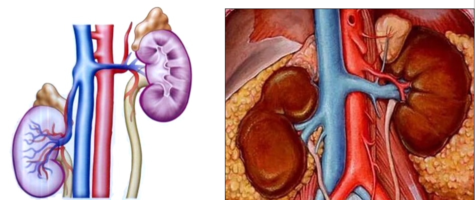 - Развивается ортостатическая или постоянная венозная гипертензия с увеличением скорости кровотока в почечной вене за счет её натяжения, истончения и перекрута, а также артерио-венозного шунтирования.