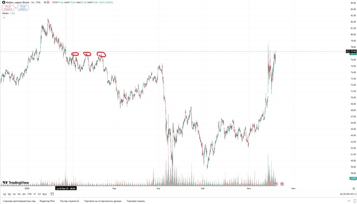 $BRN5 #BRN5 Жижа на важном уровне, сейчас будет или сильнейший откат вниз или рекордные хаи, уже 4ая попытка пробить потолок и закрепиться. Держите руку на пульсе, там можно будет встать по тренду и поднять денях. (с) Сосиска @sosisochnayagazeta