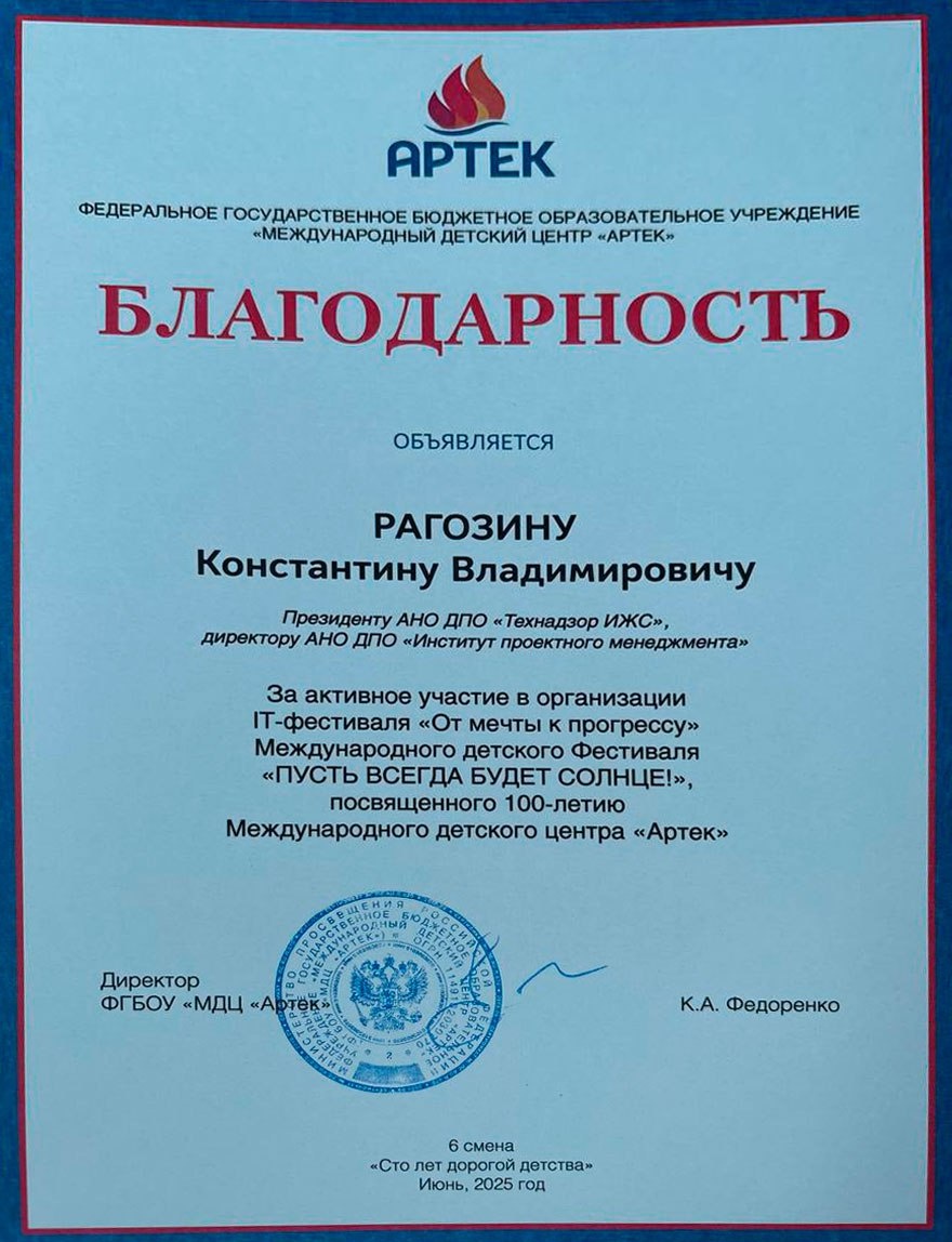 Решили немного похвастаться! Эта благодарность от руководства Артека дорогого стоит!