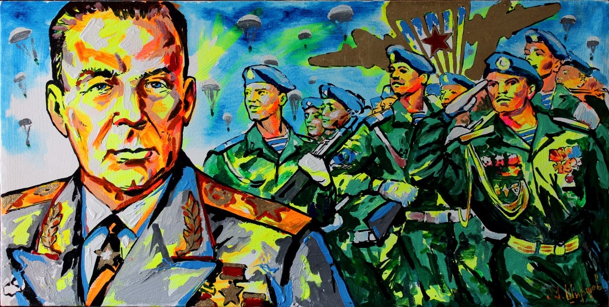 Никто, кроме нас! Девиз самой несокрушимой силы, доблестных ВДВ. Парни из стали целыми поколениями входят в героическую историю России. И непререкаемым авторитетом пользуется, по сути, создатель Воздушно Десантных Войск, мудрый и целеустремленный генерал армии Маргелов. Как заботливый отец, В. Ф. Маргелов понял, что в современных операциях успешно действовать в глубоком тылу противника смогут только высокомобильные, способные к широкому манёвру десанты. Он категорически отверг установку на удержание захваченного десантом района до подхода наступающих с фронта войск методом жёсткой обороны как пагубную, ибо в этом случае десант будет быстро уничтожен. Фотография Василия Филипповича в дембельские альбомы шла у солдат по самой высокой цене — за комплект нагрудных знаков. Честь и Слава "Войскам Дяди Васи!" так шутливо и с любовью называет себя это феноменальное братство. Картина с золотыми элементами, яркая и динамичная будет прекрасным подарком настоящим мужчинам любого возраста.