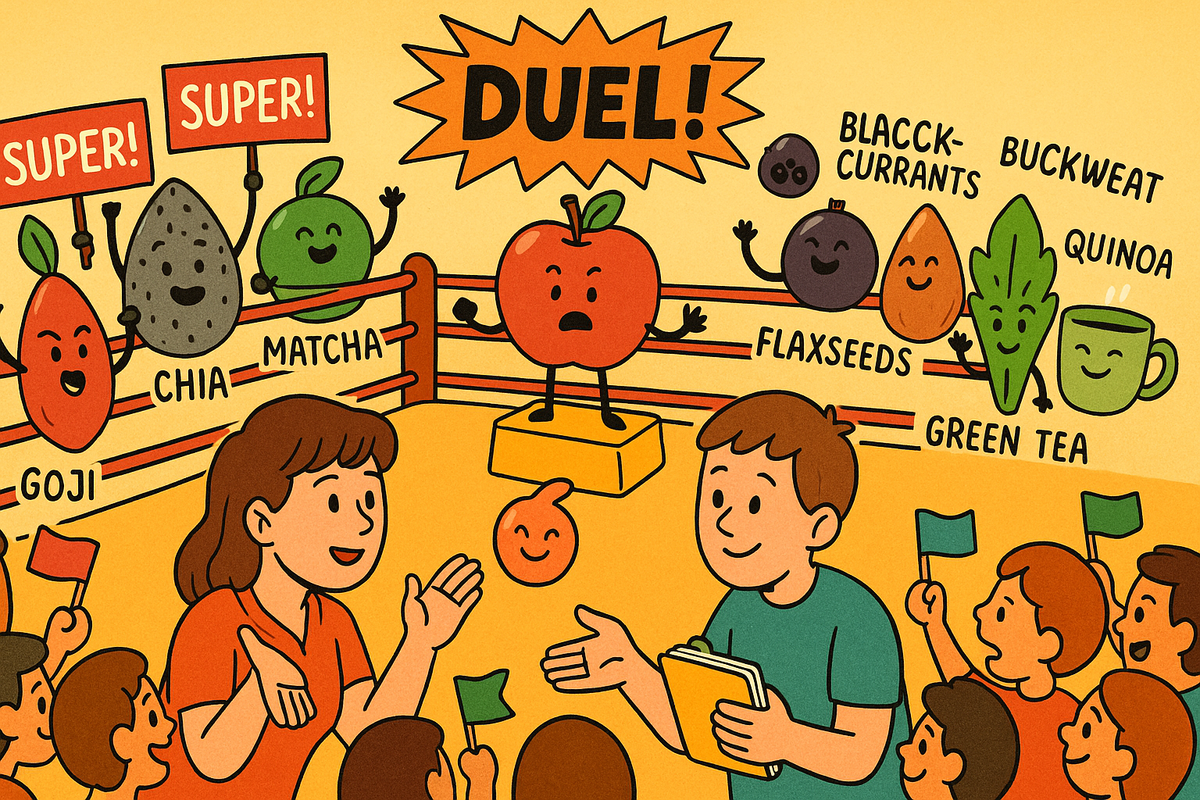 — Матвей, а ты пробовал ягоды годжи? — А семена чиа у тебя есть? — Слышал, что киноа — это новый хлеб XXI века! Вот такие вопросы мне задают не только пациенты, но и друзья, и даже родственники. Суперфуды — модное слово, которое за последние годы захватило и блоги, и полки магазинов. Кажется, что без них уже никак — если не ешь спирулину на завтрак, то точно чего-то лишаешься. А так ли это на самом деле? Давайте разберёмся честно и без рекламы. Что такое суперфуды, почему о них столько разговоров — и стоит ли тратить на них свои честно заработанные деньги? Начнём с главных героев этой пищевой пьесы. • Ягоды годжи — обещают долголетие, море витаминов и укрепление иммунитета. • Киноа — древняя крупа, которую называют «псевдозлаком». Богата белком и клетчаткой. • Семена чиа — источник омега-3, клетчатки, минералов. • Спирулина — водоросль, рекордсмен по содержанию белка и железа. • Матча — порошковый зелёный чай с ударной дозой антиоксидантов. • Асаи — тропические ягоды, славящиеся антио