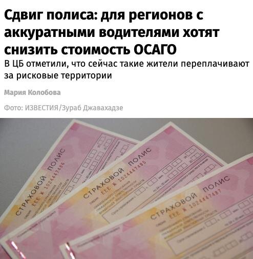 🇷🇺 ЦБ хочет пересмотреть цены на ОСАГО В некоторых регионах ОСАГО убыточно, но это «компенсируют» водители из других регионов. Страховщики говорят, что даже по максимуму тарифного коридора (его устанавливает ЦБ), сборов не хватает — особенно в «рисковых» регионах. Поэтому цена полиса растет для остальных водителей. Самые проблемные регионы по итогам 2024 года: — Ингушетия; — Дагестан; — Чечня; — Камчатка; — Карачаево-Черкесия. ЦБ готовит новую систему тарифов — по географии или другим признакам. Сейчас территориальные коэффициенты не учитывают уровень мошенничества.