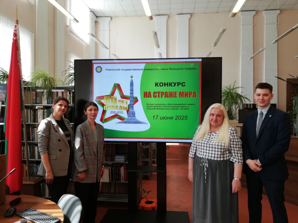 Первый конкурс «На страже мира» и его победители 🪖 В ГГУ имени Ф. Скорины состоялся первый университетский конкурс «На страже мира», приуроченный к Дню всенародной памяти жертв Великой Отечественной войны и геноцида белорусского народа – 22 июня. 🏆 По итогам конкурса 1-е место разделили между собой две команды – факультета истории и межкультурных коммуникаций и биологического факультета; 2-е место завоевали представители факультета математики и технологий программирования; 3-е место жюри присудило команде геолого-географического факультета. В индивидуальном первенстве лучшими стали следующие студенты: 🥇Диплом I степени – Кривенок Тимур Евгеньевич, Позняк Владимир Андреевич, Пешкун Ангелина Андреевна. 🥈Диплом II степени – Королев Милан Валентинович, Шершнева Виктория Игоревна, Райлян Алиса Артуровна 🥉Диплом III степени – Шелегеда Ренат Алексеевич, Добродей Софья Николаевна, Гулевич Янина Сергеевна.