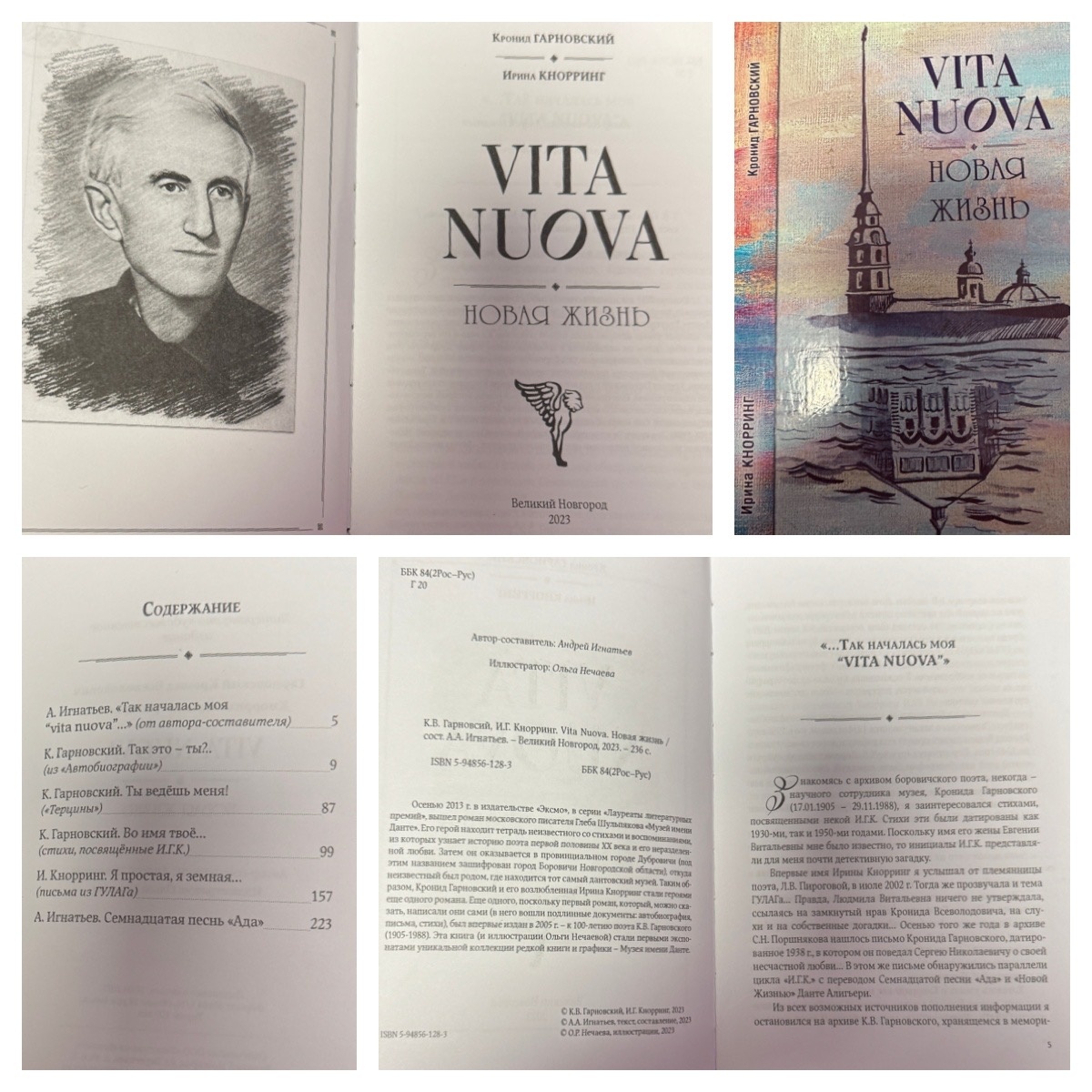 К этой книге я приступала очень долго. Я получила ее в подарок от автора год назад. А прочла только сейчас. За один день. Пока сидела в комнате ожидания ПЭТ-КТ. Я не могла оторваться. Вот уже две недели я вспоминаю не только историю жизни и любви, но и удивительно легкий стиль, которым написана эта книга. Автор книги и составитель Андрей Александрович Игнатьев — сотрудник Боровичского филиала Новгородского музея-заповедника, поэт, член Союза писателей России, известен как исследователь в области литературного краеведения. А еще Андрей Александрович — главный хранитель музея имени Данте. Музей у него на дому. В нем мы побывали с П-А в прошлом году, когда были в Боровичах. Мы не заметили, как за рассказом о Данте пролетело 2 часа. Книга "Vita Nuova" - это не только о неразделенной любви молодого человека, которую он пронес через всю жизнь. Это биографическая история дворянина Кронида Всеволодовича Гарновского, уроженца Боровичского уезда, и его возлюбленной Ирины Кнорринг. Книга сост