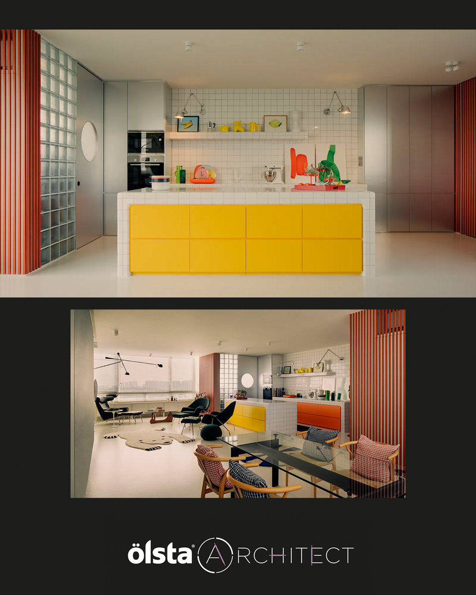 В этом проекте студии SPARK цвет становится не декором, а полноправным инструментом архитектуры. Квартира площадью 132 м² в сингапурской бруталистской башне изначально была тёмной и перегруженной перегородками. Авторы проекта кардинально переработали планировку, открыв пространство и впустив в него свет. Но именно цвет сделал этот интерьер живым, динамичным и индивидуальным. Каждая зона здесь имеет свою цветовую формулу. Яркие акценты задает кухня: сочные желтые и апельсиновые тона в отделке, мебели и даже бытовой технике. Этот открытый блок контрастирует с нейтральными зонами, и именно за счет цвета становится точкой притяжения, а не просто функциональным пространством. Модули в жилой части, отделенные «галерейными» подвижными панелями, окрашены в пудровый фисташковый, баклажановый и сине-зеленый. Цвет здесь работает как средство зонирования без стен и перепадов высот. Мягкие, сложные оттенки визуально отделяют рабочую зону от зоны отдыха, при этом оставляя пространство цельным и про