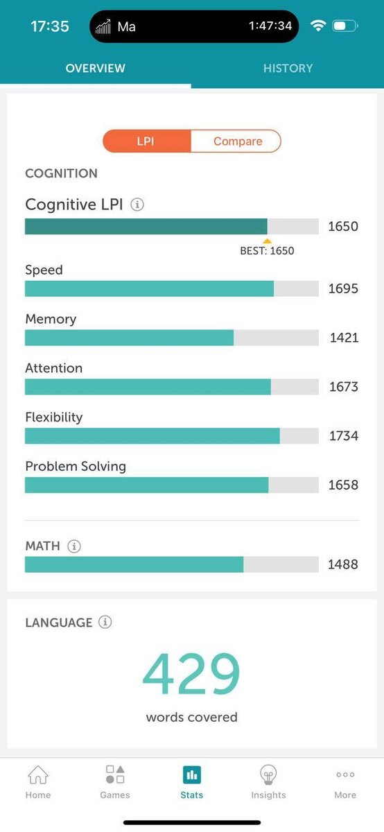 📊 Обновление по когнитивке — 18 июня 🎯 Новый рекорд: 1650 LPI И важный прорыв — обновил личный рекорд в Memory Tides (одна из самых требовательных игр на рабочую память), который держался, возможно, годами. Показатели: ⚡️ Скорость — 1695 🎯 Внимание — 1673 🔄 Гибкость — 1734 🧠 Логика — 1658 🧠 Память — 1421 🧮 Математика — 1488 🧬 Что это значит: — Прорыв не вспышка — это глубинная стабилизация — Память возвращается — не через напряжение, а через интеграцию — Результаты сохраняются даже после напряжённых дней и сна “ниже нормы” Это не “удача”. Это новый нейронный ландшафт. Ничего не давит — но всё растёт. Без усилия. Без откатов. Без костылей. #когнитивка