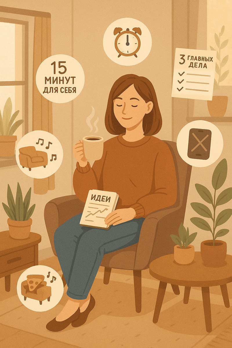 Это встроенная "пауза", которая каждый день возвращает тебе ощущение контроля. Даже если день прошёл в хаосе, у тебя было хотя бы 15 минут только твоей жизни.