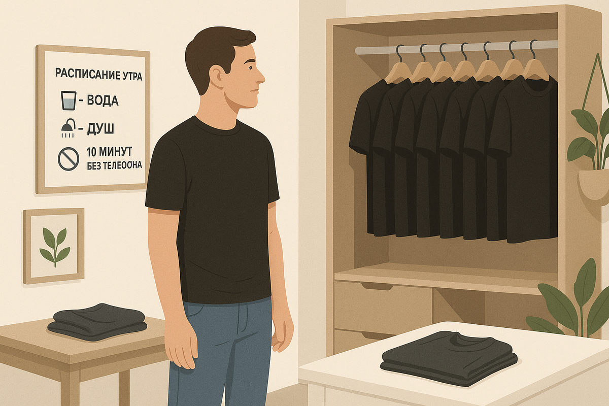 Каждое, даже самое мелкое решение — завтрак, маршрут, одежда, время для спортзала — тратит силы мозга. Это называется decision fatigue — усталость от принятия решений.