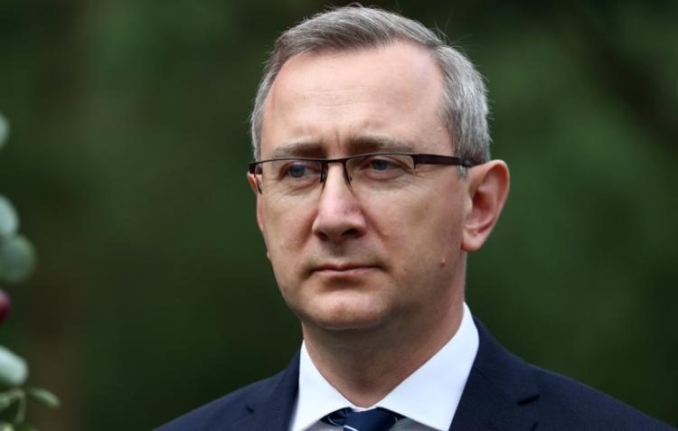 KALUGA REGION, RUSSIA - JUNE 22, 2020: Vladislav Shapsha, acting governor of the Kaluga Region, attends a ceremony to unveil a stele in memory of the soldiers who went missing in action during World War II in the village of Kuzminichi. Anton Novoderezhkin/TASS Россия. Калужская область. Временно исполняющий обязанности губернатора Калужской области Владислав Шапша на торжественном открытии стелы в память воинов, без вести пропавших на фронтах Великой Отечественной войны, в деревне Кузьминичи. Антон Новодережкин/ТАСС Объем промышленного производства в Калужской области России фактически в два раза больше, чем во всей Армении, заявил глава региона Владислав Шапша в ответ Николу Пашиняну. Слова Шапши привел журналист Константин Придыбайло. Ранее Пашинян комментировал задержание бизнесмена Самвела Карапетяна фразой «это вам не деревня Нижний Тапр в Калуге». Промпроизводство Армении — порядка $6 млрд в год. Однако Калужская область — крупнейший автомобильный центр России, с крупными завода