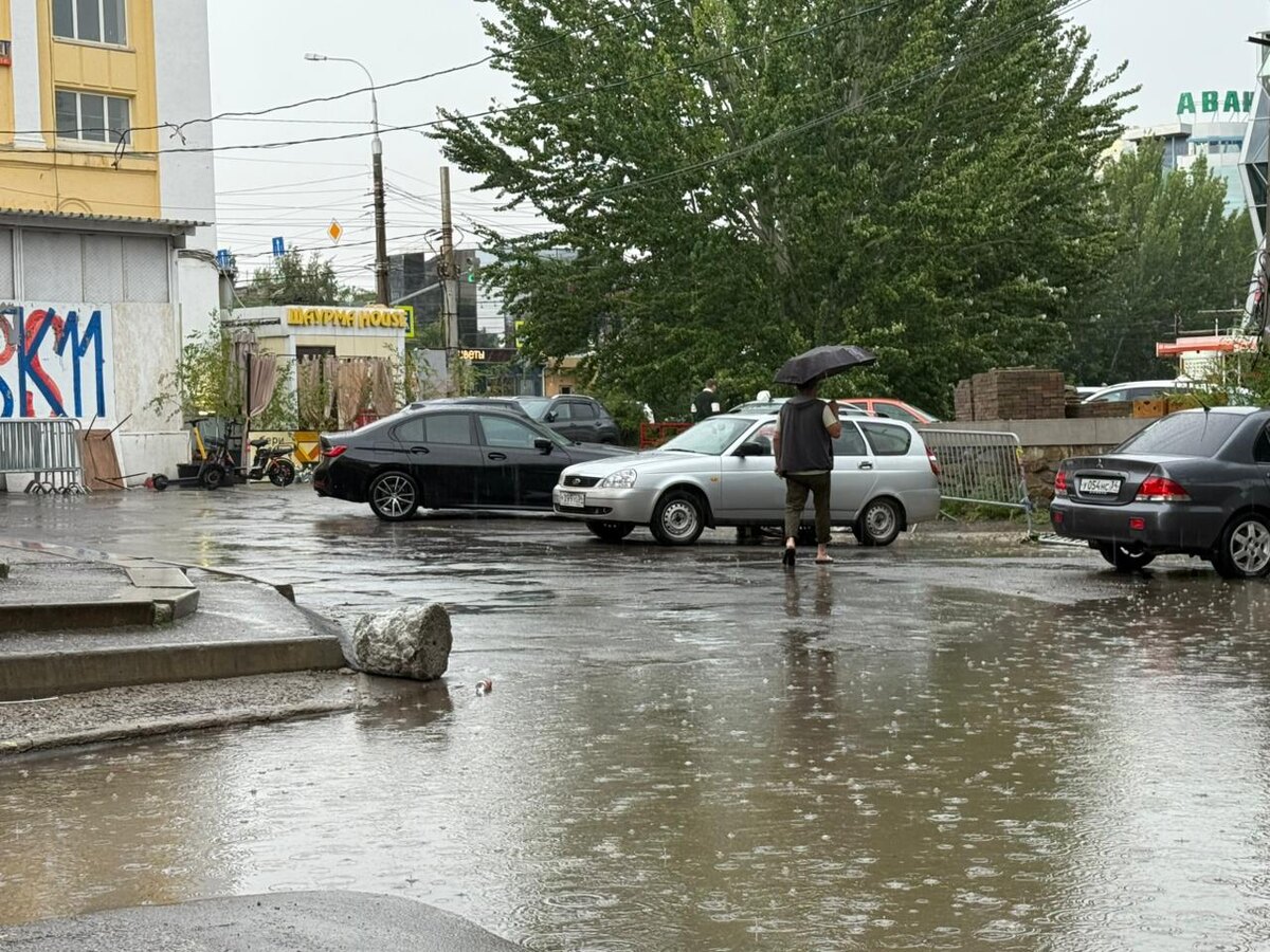 Волгоград накрыл мощный ливень, после которого улицы города ушли под воду. Показываем, как местные жители переправляются через затопленные дороги.