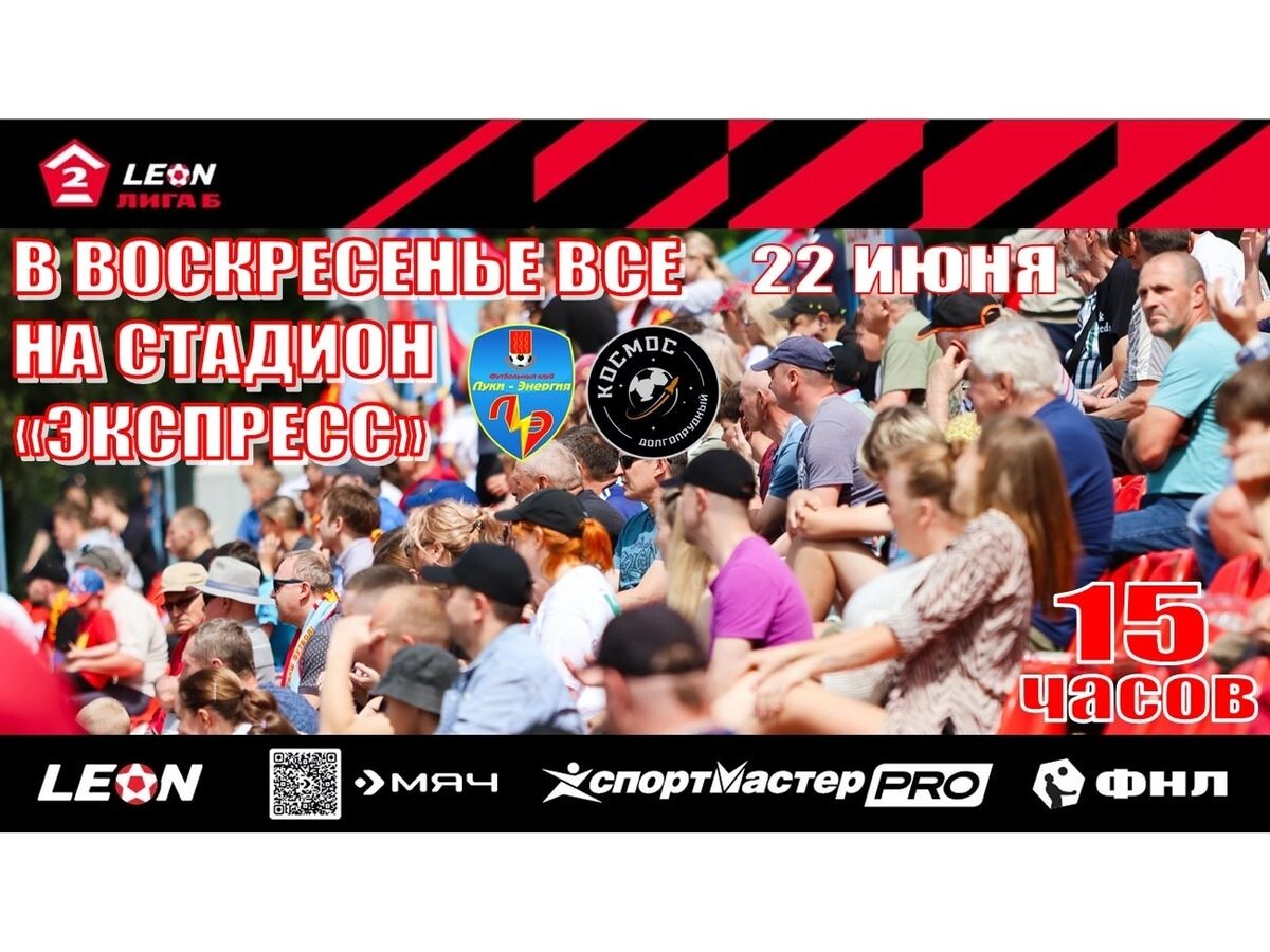 «Луки-Энергия» приглашает на домашний матч (0+) ⚽ В воскресенье, 22 июня, «Луки-Энергия» сыграет с «Космосом» из Долгопрудного на стадионе «Экспресс». Это 13-й тур LEON-Первенства Второй лиги «Дивизиона Б». Начало матча в 15:00. 🎟️ Входной билет стоит 150 рублей, оплата наличными или картой. Льготные категории могут пройти бесплатно. Это последний домашний матч команды в первом круге. 🏟️ Следующая игра на «Экспрессе» состоится только 10 августа против «Торпедо-Владимир». Болельщиков ждут на трибунах с семьями и друзьями! 👉Подписывайтесь на ВЛуки.ру