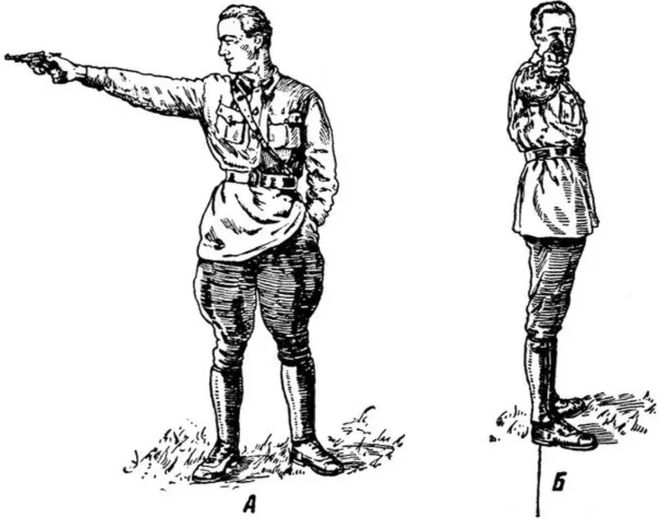 - как правильно стоять и держать оружие;