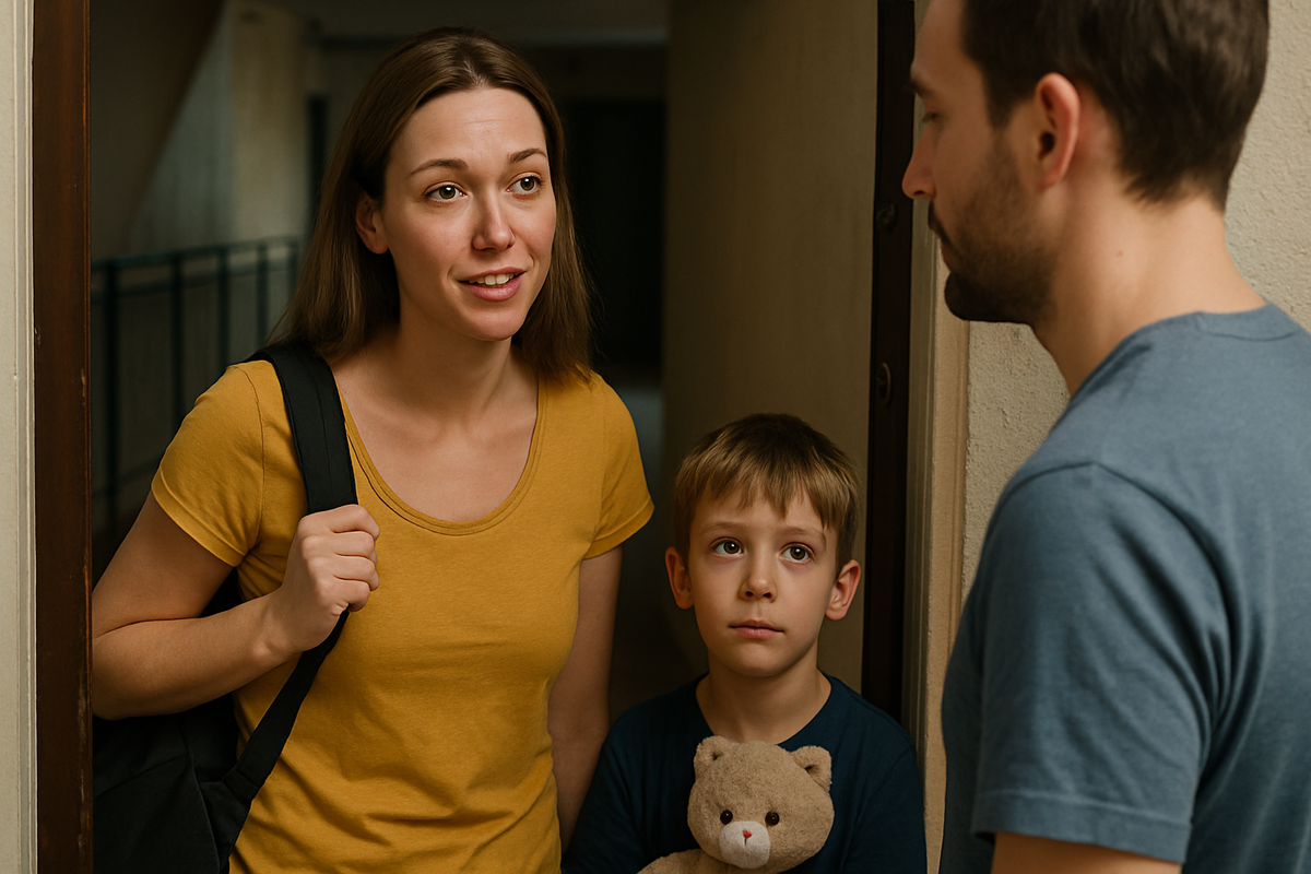 Лена стояла в коридоре с сыном. У неё в руке — рюкзак, на лице — та самая «виноватая, но ты же поймёшь» улыбка.