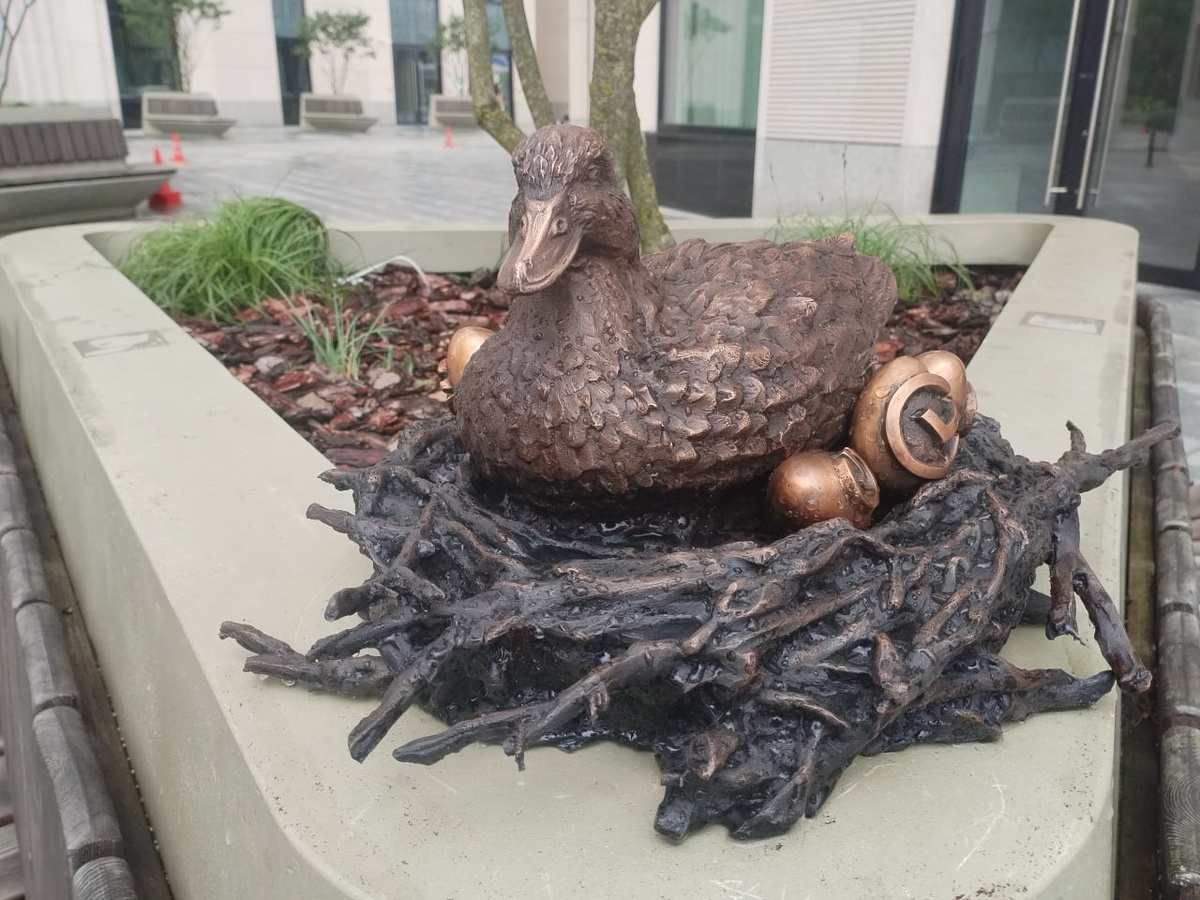 Утка высидела птенцов прямо в центре Минска прошлым летом Ее подкармливали сотрудники офиса одного из крупных банков. История разошлась в сети. Год спустя утку решили увековечить. Банк поставил ей небольшой памятник на историческом месте, где она вывела свой приплод. @SPUTNIKBY