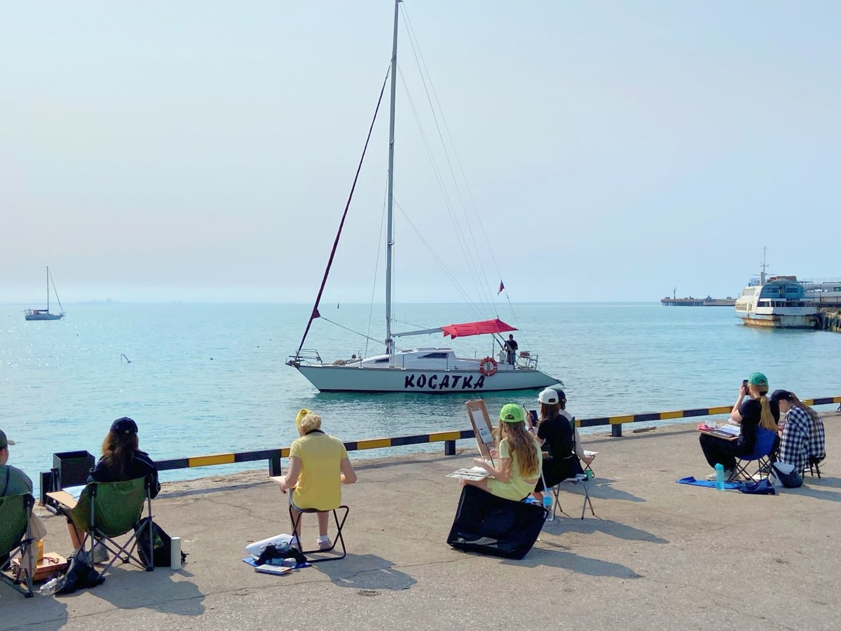 Второй день пленэра художественной школы. Море, солнце, штиль, яхты!