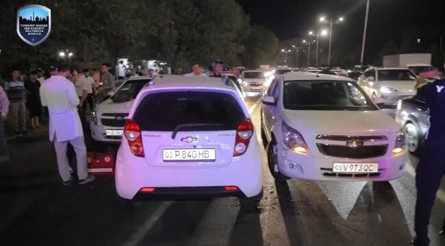 Спустя некоторое время угонщика на автомобиле "Spark" удалось обнаружить в Шайхантахурском районе, где он выехал на полосу встречного движения и совершил столкновение с двумя автомобилями "Cobalt", которые стояли на светофоре, ожидая разрешающий сигнал светофора.