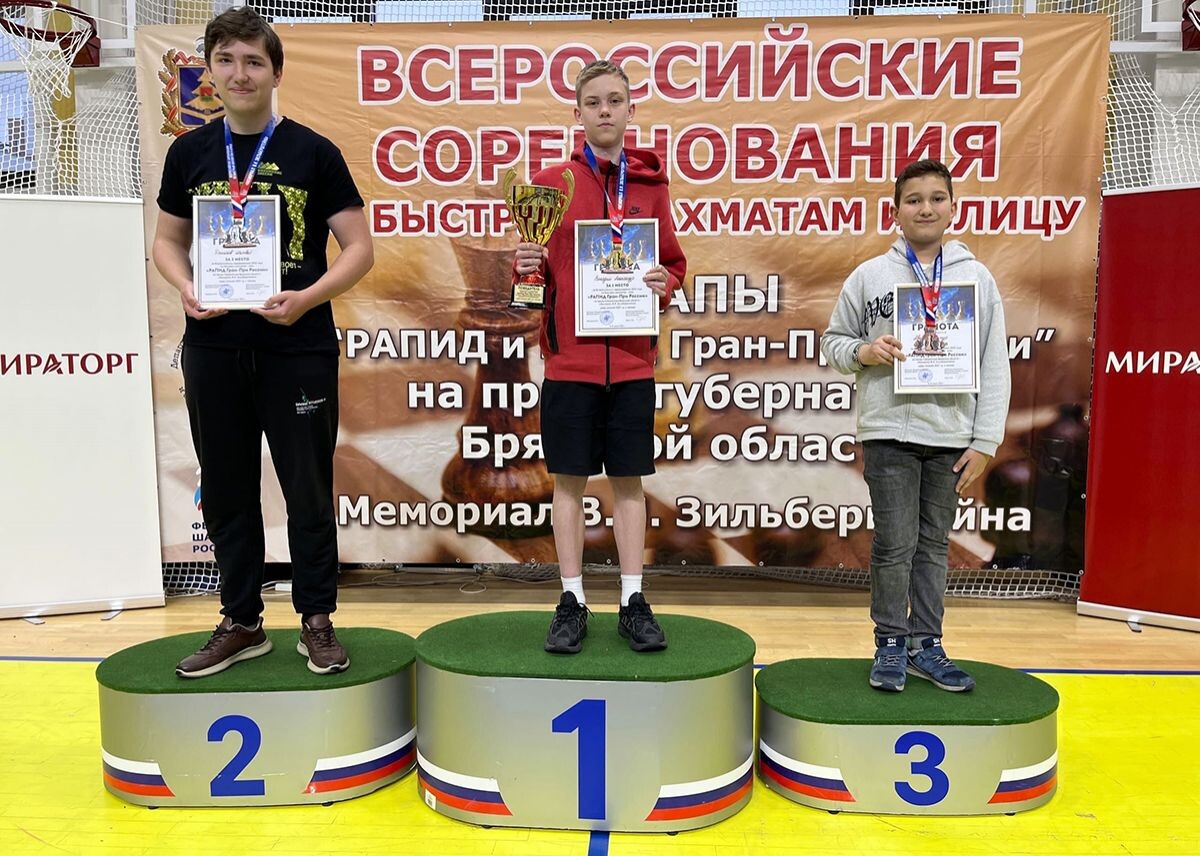 В Брянске завершился всероссийский турнир «Мемориал В.И. Зильберштейна», который включал в себя этап Кубка России по шахматам, Рапид Гран-При России и Блиц Гран-При России. Напомним на этапе кубка России калужский шахматист Андрей Макович завоевал серебряную медаль. Поддержали нашего шахматиста и его юные коллеги. Так, в рапиде (в турнире юношей 2007 года рождения и моложе) Матвей Денисов стал вторым (8 очков), а Артур Авагян (7,5 очков) завоевал бронзовую медаль. Первенствовал здесь Александр Володин из Смоленской области. Денисову Матвею удалось отличиться и в блице - он стал бронзовым призёром соревнований, пропустив вперёд себя Олега Полуляхова из Свердловской области (который стал вторым) и Алексея Прохорова из Свердловской области, который завоевал золото турнира.