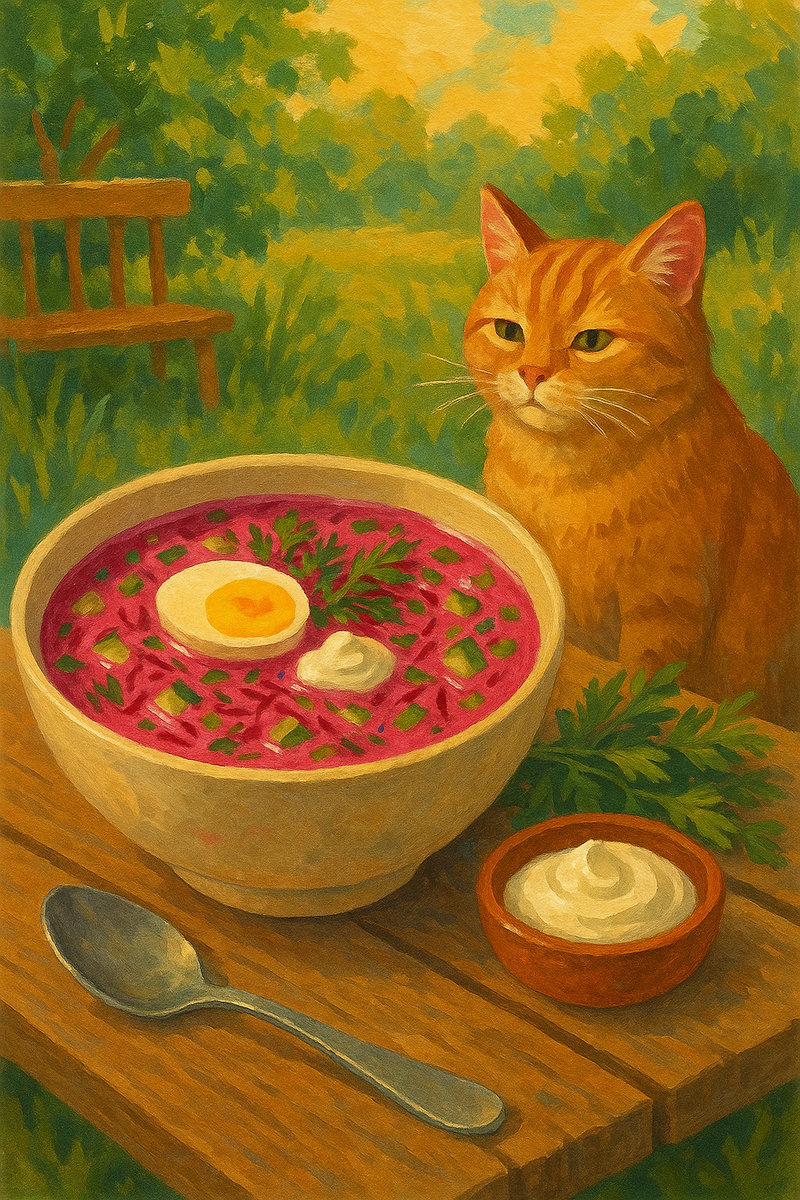 Холодный борщ со свёклой и огурцами — классика жаркого дня Когда лето решает показать свой характер, а градусник в окне давно сдался и тихо потеет, на помощь приходит простой, как всё гениальное, холодный борщ. Тот самый, знакомый с детства розовый суп, который спасает в зной даже сильнее, чем кондиционер, и возвращает веру в жизнь после очередного маринованного кабачка. В чём секрет? Всё просто: минимум суеты, максимум свежести и немного магии — свёкла, огурцы, зелень, яйцо и ложка густой сметаны. А ещё в каждой тарелке всегда прячется что-то особенное: запах бабушкиной кухни, ленивый полдень на даче, звуки далёкого радио и ощущение, что именно сейчас всё в мире хорошо. Ингредиенты на 4 порции: Как готовить: Совет: если на улице совсем жара, добавьте кубики льда прямо в тарелку перед подачей — суп станет ещё бодрее! Почему холодный борщ должен быть этим летом у вас на столе?