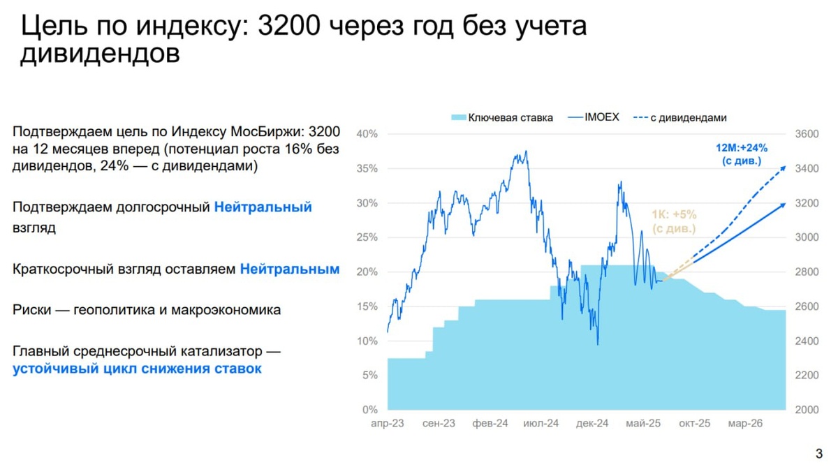 📈 Индекс Мосбиржи будет на уровне 3200 через год, с учетом дивидендов — 3400 пунктов, — прогноз БКС