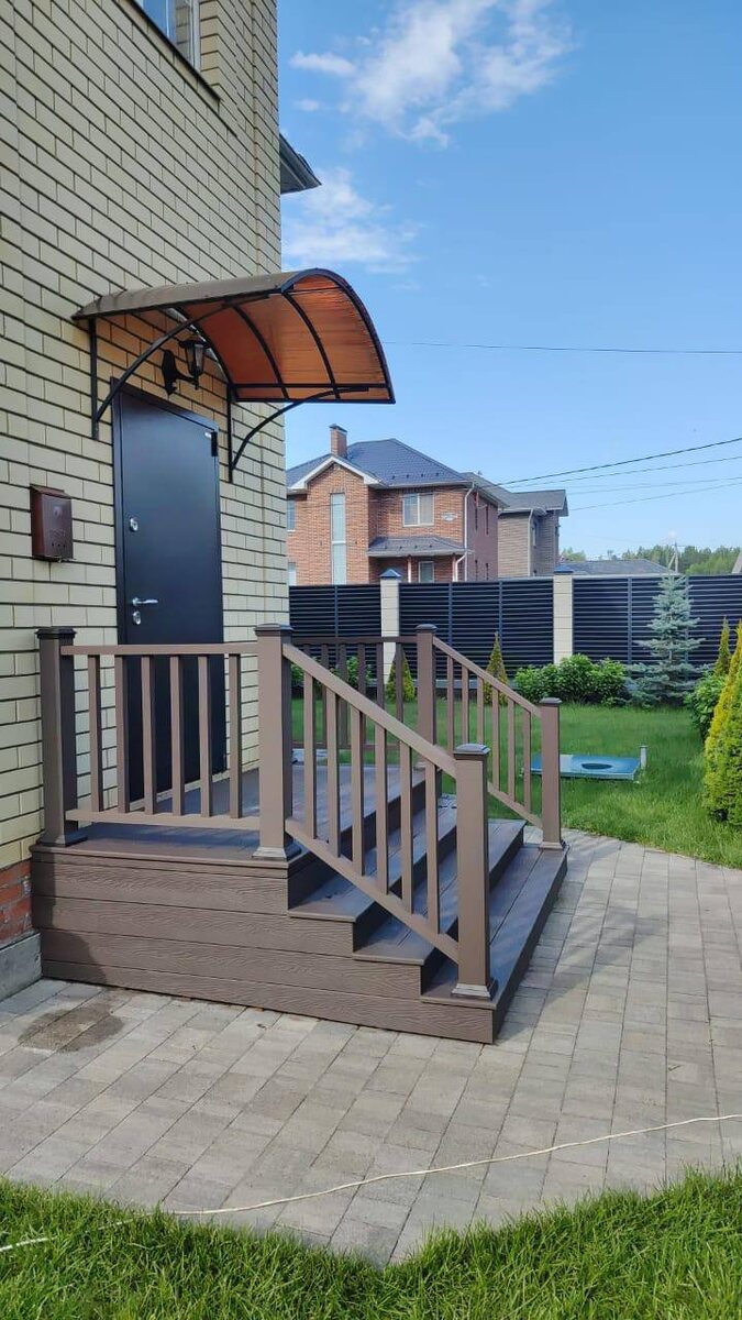 #готовыйобъект Входная группа из дпк очаровывает с первого взгляда😍 ❕Наш новый завершенный объект в пос. Живописный Ну как она подошла к дому🫰🔥 Если у вас нет входной группы или она потеряла свой вид, лучшим решением будет сделать долговечную входную группу из дпк! 💸Цена данной входной группы: 194 000₽ Весь материал с нашего склада в г. Казань. Можете купить только материал, либо заказать монтаж под ключ👇 📲 +7 953 999 42 96 ✍️ @terrasa_n1 📍 г.Казань ул.Мансура Хасанова 15