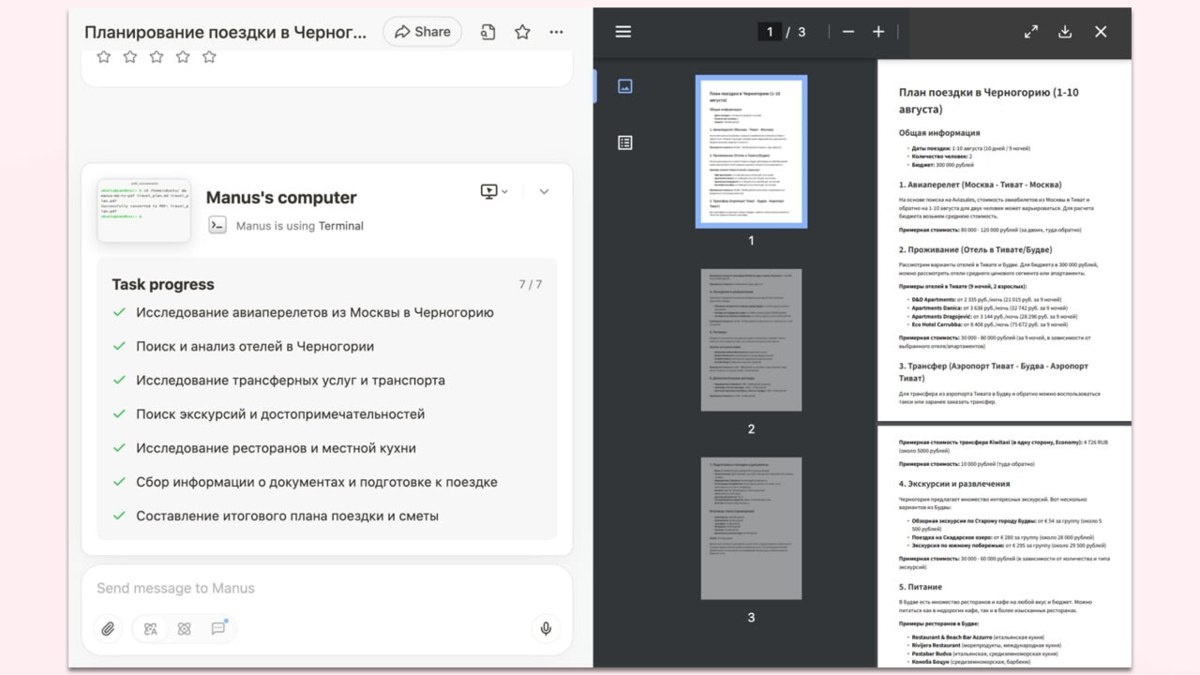 В мае 2025 года разработчик китайского ИИ-агента Manus открыл доступ всем пользователям. В тексте выясняем — как пользоваться агентом и как он решает поставленные задачи: например, планирует путешествие, пишет код для игры и создаёт контент для Telegram-канала vc.ru/ai/2050227
